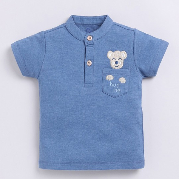 Navy blue and beige embroidered T-shirt ,has a round neck, short sleeves